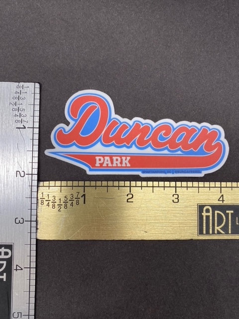 Duncan Park Sticker in red and blue.